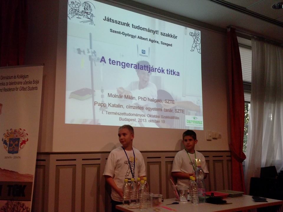 Nehéz leírni azt a síri csendet, ahogy a szegedi Szent-Györgyi Albert Agóra legfiatalabb előadóinak szorítottunk, hogy sikerüljön lámpalázasan is elkészíteni a Cartesius-búvárt. Úgy éreztem, végre egy olyan természettudományi rendezvényen vagyok, amelyet nem csak azért kell megtartani, mert egy pályázat megvalósítási feltételei előírják azt. Hittem, hogy ide tényleg mindenki a tudományok szeretete miatt jött. Ebben erősített meg Zsigó Zsolt Miklós, a Bánki Donáth Műszaki Szakközépiskola tanárának motiváló előadása, a Mobilis Győr tűzoszlopa.