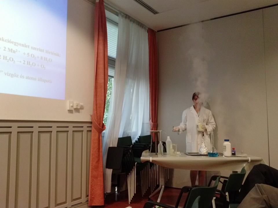 Lenyűgözött Szórád Endre, a zentai Boyai Gimnázium tanárának és diákjainak a kémia szeretetéről árulkodó minden mondata. Lehetett szó akát a Brown-mozgás modellezéséről (Premontrei Szent Norbert Gimnázium), a kettős inga kaotikus mozgásáról (Kecskeméti Református Gimnázium) vagy a korongos abakusz matematikájáról (Csordásné Anda Éva), a hallgatóság nagy érdeklődéssel követte a prezentációkat. Dr. Újvári Sándor és Papp Eszter elektromágneses “zenei” bemutatója fellelkesítette a nézőtér apraját és nagyját.