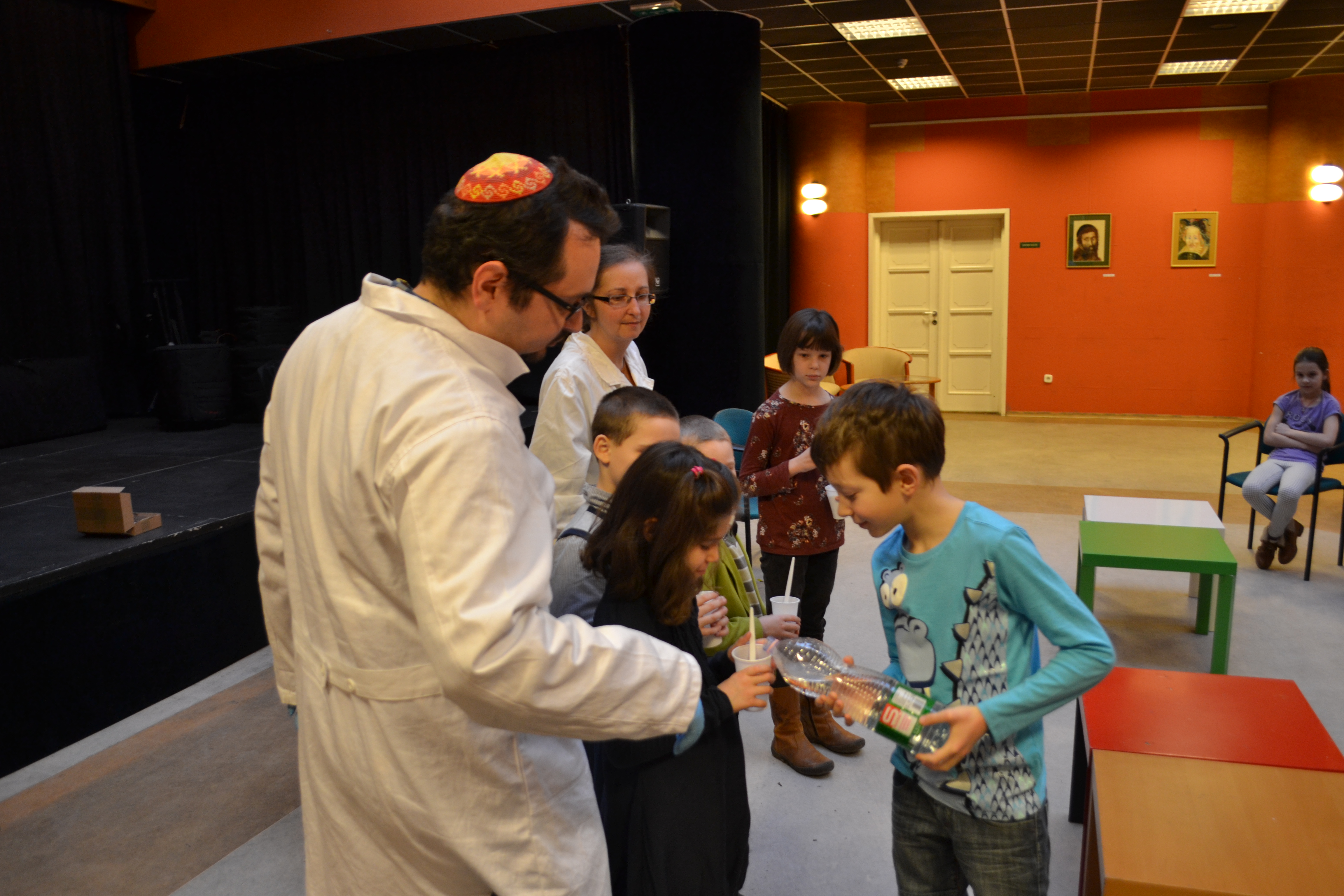 Különleges foglalkozásra került sor a BÁLINT-FRANKEL KÖLYÖKBRANCS programsorozat keretében február 9-én a Bálint Házban. Kémcső Jenő és Spatula Sára ezúttal a zsidó ünnepekhez kapcsolódó kémiai kísérletekbe vonta be az óvodás és kisiskolás gyerekeket. A zsinagógai naptár kiemelkedő napjain végighaladva készült többek között lag baomeri tűzijáték, hanukai csodalámpa, yom haatzmauti lufidíszítés, tu bisváti jégsaláta, és táncoltak a savuoti tejpacák is. A háztartásban előforduló anyagok felhasználásával végzett kísérletek során jutott idő az egyes jelenségek életkori sajátosságokat figyelembe vevő magyarázatára.